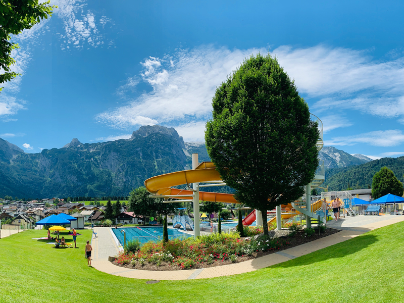 Sonnenterasse: Terassenmöbel, Sonnenschirm, Grill.