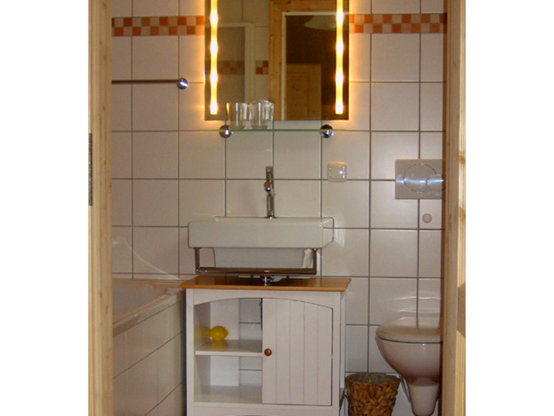 Badezimmer und WC: 1 Bad mit Wanne und WC, 1 Bad mit Dusche und WC.