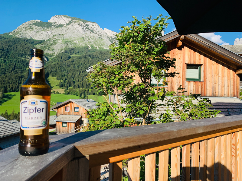 Zentralgebäude Alpendorf Dachstein West: Hallenbad, Sauna, Brötchenservice, Mini Shop, Cafe "Das Hannes", Skiverleih.